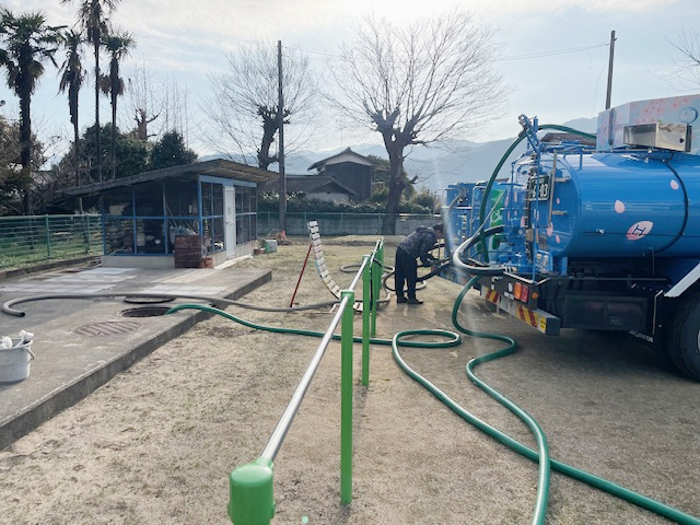 下水道の普及していない地域で、生活を支える『浄化槽』の維持管理の内「清掃」です。